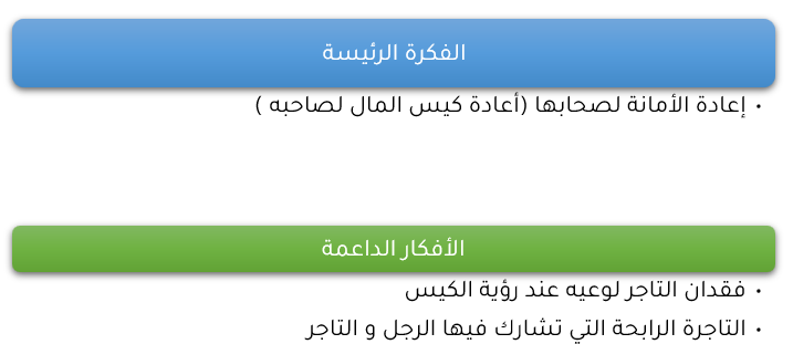 أ- أبين الخطة الي اتبعها اللرجل لإعادة الأمانة للتاجر و أبدي رأيي فيها