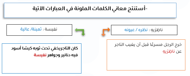 1)أستنتج معاني الكلمات الملونة في العبارات الآتية