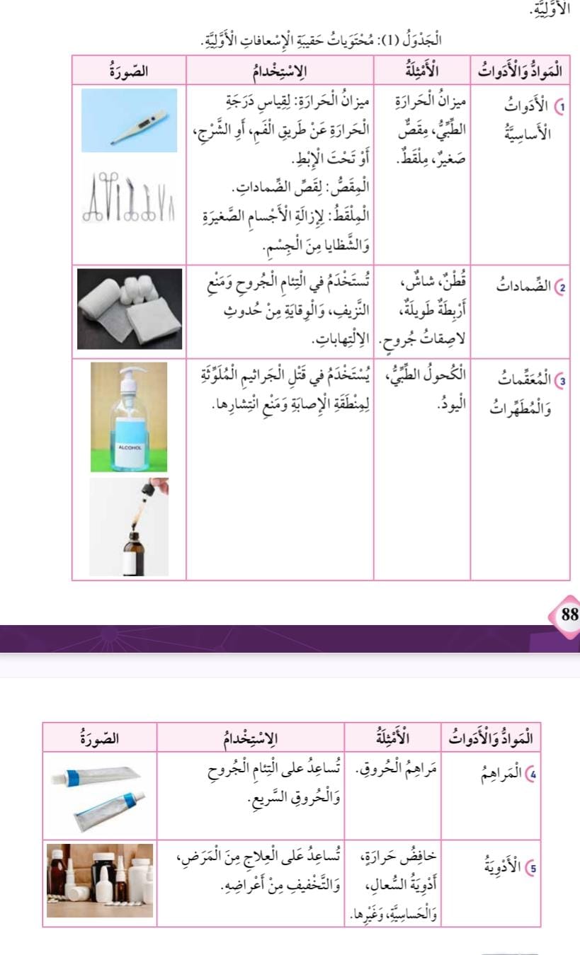 سلمى: ما هي مكونات    حَقيبَةُ الْإِسْعافاتِ الْأَوَّلِيَّةِ