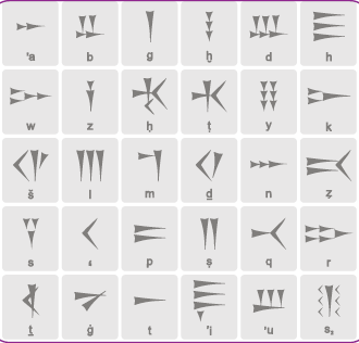 وَخَيْرُ مِثالٍ عَلَيْها: أَبْجَدِيَةُ أوغاريت، الَتي اكْتُشِفَتْ شَمالَ مَدينَةِ اللاذِقِيَةِ في سورِيّا، وَانْتَشَرَتْ في حَضاراتِ بِلادِ الشّامِ الْقَديمَةِ.
