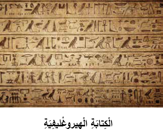 كِتابَةً تَصْويرِيَةً تَعْتَمِدُ عَلى الصُوَرِ في التَعْبيرِ أُطْلِقَ عَلَيْها اسْمُ (الْكِتابَةِ الْهيروغْليفِيَةِ).