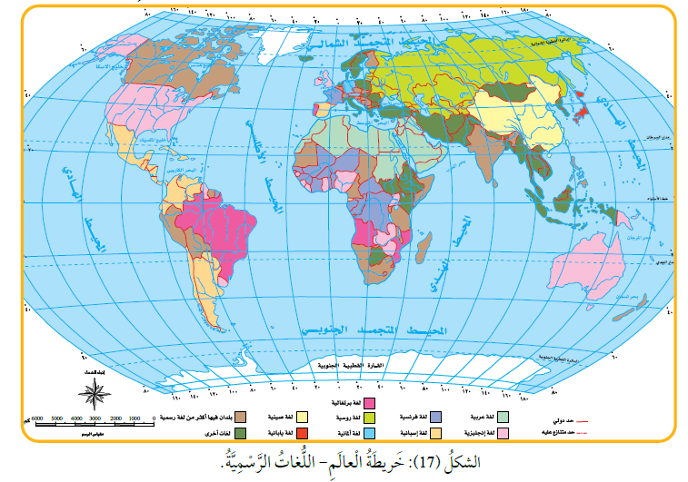 أَنْظُرُ الشَكْلَ الْآتِيَ الَذي يُبَيِنُ تَوَزُعَ اللُغاتِ في الْعالَمِ: