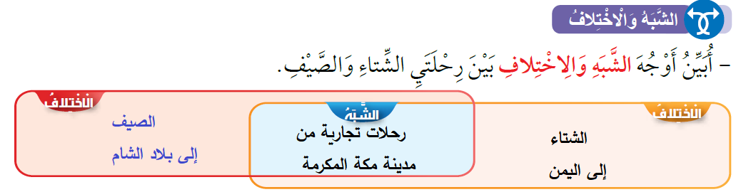إِحْداهُما إِلى الْيَمَنِ في الشِتاءِ، وَالْأُخُرى إِلى بِلادِ الشّامِ في الصَيْفِ،