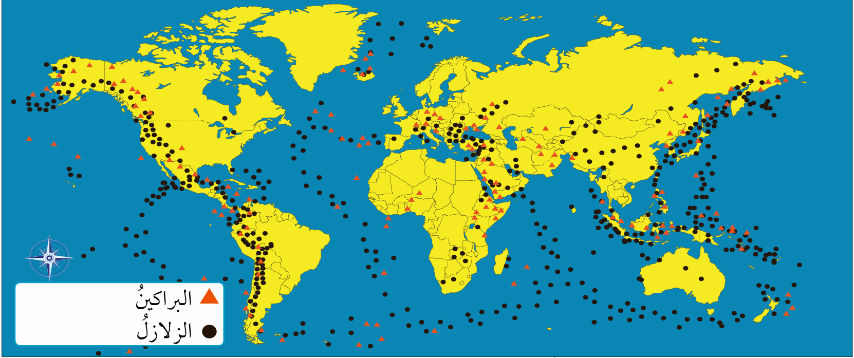 تتركز الزلازل والبراكين عند حدود الصفائح الأرضية.