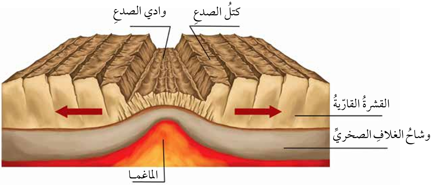 تتكوّن قشرة محيطية جديدة أو أودية متصدعة.