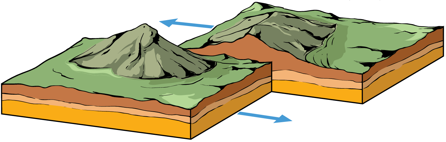 تتحرك الصفائح أفقيًا في اتجاهين متعاكسين على طول صدع.