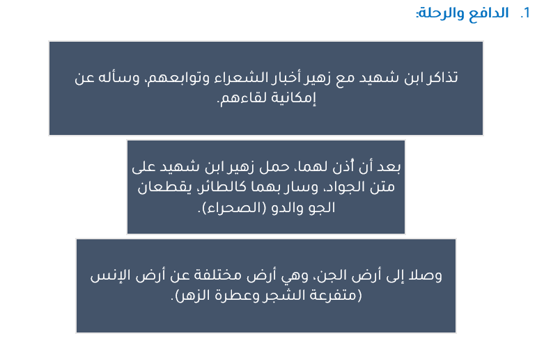هذا المقطع يصور الرحلة الخيالية التي قام بها ابن شهيد برفقة الجني زُهير بن نُمير:
