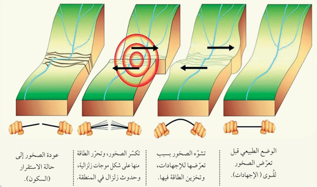 5- ثم تعود الصخور بعد ذلك الى حالة الاستقرار (السكون).