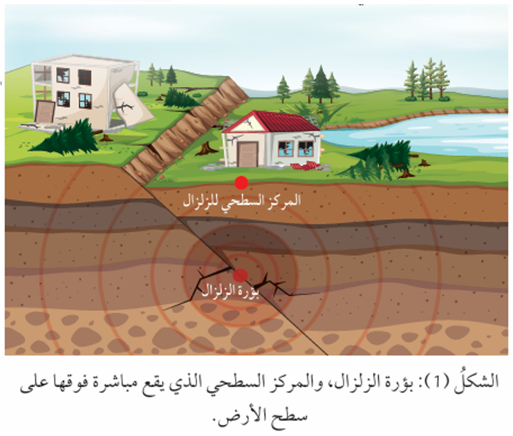 بؤرة الزلزال: يطلق على نقطة التي تتحرر منها الطاقة المختزنة وتنتشر في جميع الاتجاهات في باطن الأرض.