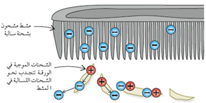 وهو ما يعرف (بالاستقطاب). وهو يفسر انجذاب قصاصات الورق الصغيرة نحو جسم مشحون، إذ تنزاح الشحنات داخل الورقة بحيث يكتسب سطح الورقة القريب من المشط شحنة موجبة، فتتجاذب مع الشحنة السالبة على المشط، كما في الشكل: