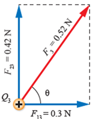 أُحدّد اتّجاه القوّة المحصّلة التي تؤثّر في الشحنة الثالثة؛ بمعرفة الزاوية المرجعية θ بين القوّة المحصّلة ومحور (x) الموجب، كما في الشكل: