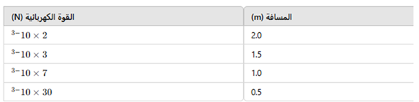 د) أصدر حكمًا: هل تخضع هذه النتائج لقانون كولوم بدقة؟ أفسر إجابتي.