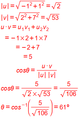 7) اجد قياس الزاوية بين المتجهين ،و لافرب جزة من عشرة