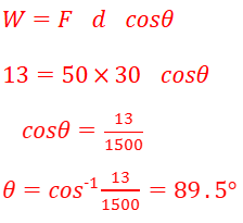 سحب فارس عربة، فبذل شغلا مقداره 13J، بقوة مقدارها 50N، مسافة d=30m