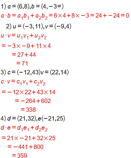 اجد ناتج الضرب القياسي للمتجهين في كل مما ياتي: