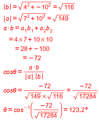 5) اذا كان ،و، وكان قياس الزاوية المحصورة بين aوb هو ، فاجد ناتج