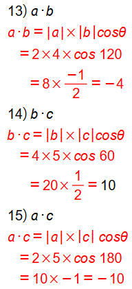 6) اذا كان ،و ، وكان قياس الزاوية المحصورة بين aوb هو ، فاجد ناتج