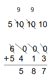 أَنْتَجَتْ مِعْصَرَةٌ في الْيَوْمِ الَْأوَّلِ 5413 L مِنَ الزَّيْتِ وَ 6000 L في الْيَوْمِ الثّاني، كَمْ يَزيدُ إِنْتاجُ الْيَوْمِ الثّاني عَنِ الْيَوْمِ الَْأوَّلِ؟