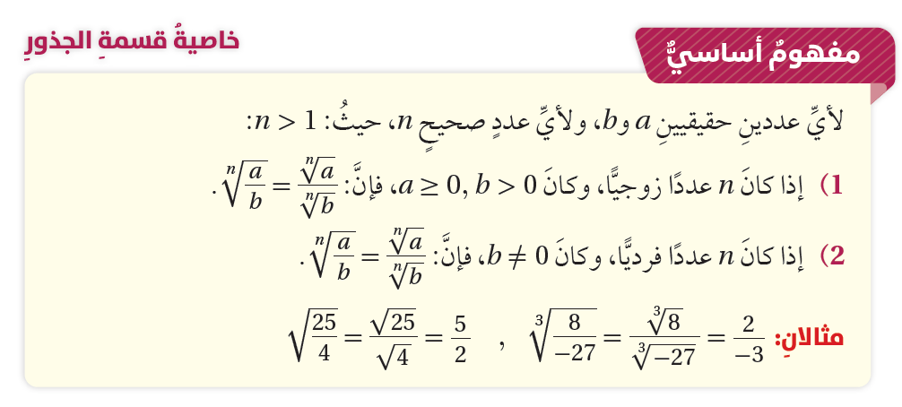 مفهومٌ أساسيٌّ (خاصيةُ ضربِ الجذورِ)