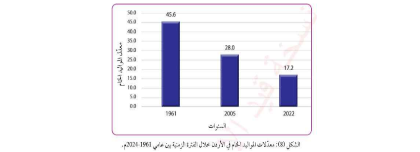 - نلاحظ وبسبب العوامل السابقة انخفاض معدلات المواليد في الاردن حيث وصل الى ١٧،٢بالالف عام ٢٠٢٢م