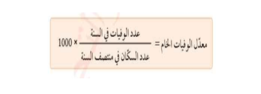 - يعرف معدل الوفيات الخام : مقياس ديموغرافي يستخدم لقياس عدد الوفيات في منطقة معينة خلال فترة زمنية محددة لكل ١٠٠٠ نسمة من السكان