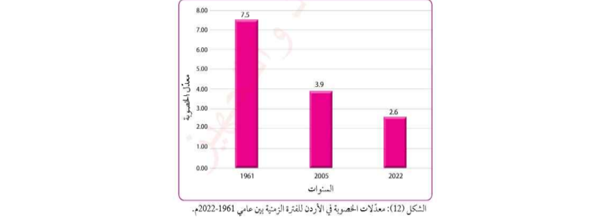 - يقدر معدل الخصوبة في الاردن بحوالي ٢.٦لكل إمرأة في سن الانجاب في عام ٢٠٢٤م