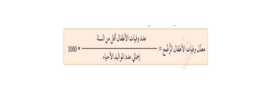 - يحسب معدل وفيات الاطفال الرضع حسب المعادلة الآتية: