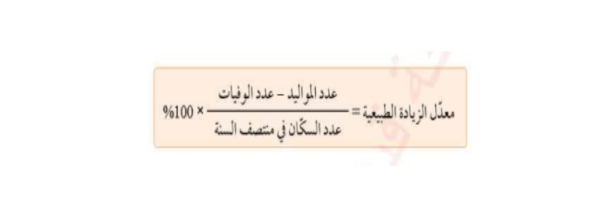 - تعرف الزيادة الطبيعية بانها الفرق بين عدد المواليد وعدد الوفيات خلال سنة