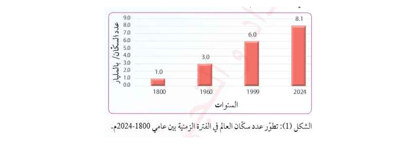 - يوضح الشكل البياني التالي تطور عدد سكان العالم بين عامي ١٨٠٠-٢٠٢٤م :