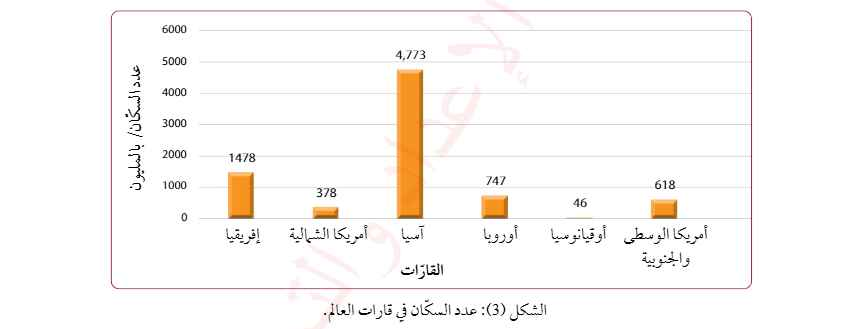 - يبين الشكل الاتي عدد السكان في القارات: