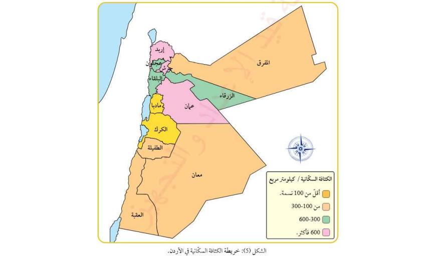 من خلال خريطة المملكة الاردنية نلاحظ طبيعة الكثافة السكانية
