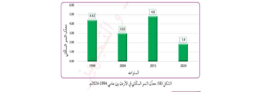 ٢- ثم انخفض معدل النمو السكاني في الاردن ووصل الى ١.٩٪ في عام ٢٠٢٤م