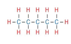 2 - أوزّع ذرّات الهيدروجين على ذرات الكربون بحيث تكون كل ذرة كربون اربع روابط تساهمية أحادية كما في الشكل المجاور ، ويكون الاسم بنتان .