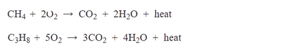 تفاعل احتراق الميثان CH4 والبروبان C3H8