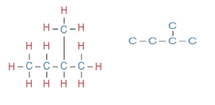 4 - أوزّع ذرّات الهيدروجين على ذرّات الكربون ، بحيث تُكوِّن كلّ ذرّة كربون أربع روابط تساهمية أُحادية في الشكل المجاور، ويكون الاسم 2- ميثيل بيوتان.