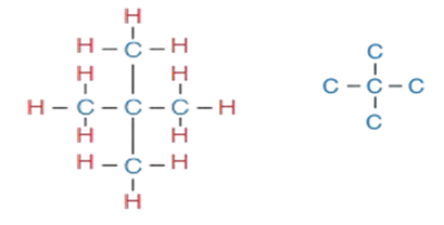 6 - أوزّع ذرّات الهيدروجين على ذرّات الكربون؛ بحيث تكوّن كلّ ذرّة كربون أربع روابطَ تساهمية أُحادية كما في الشكل المجاور، ويكون الاسم 2،2- ثنائي ميثيل بروبان