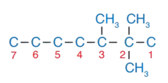 - سمّ السلسلة الكربونية الطويلة حسب عدد ذرات الكربون فيها كما تسمى الألكانات غير المتفرعة.