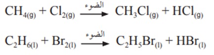 تفاعل هلجنة الميثان CH4، والإيثان C2H6