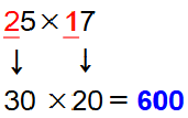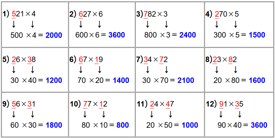 4) اختار من العمود الأيمن عددين , يكون تقدير ناتج ضربهما العدد في العمود الأيسر :