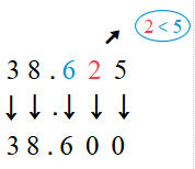 • إِذا كان أَصغر من 5 يبقى الرَّقمُ المُحدّد كما هو، أَمّا إِذا كان 5 أو أَكبر فأُضيف 1 إلى الرّقْم المُحدَّد.