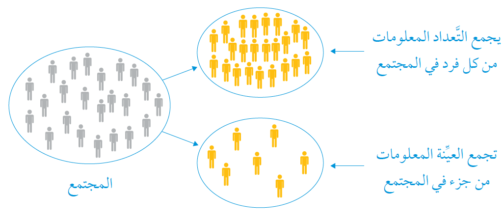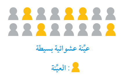 أتذكر: يُطلَق على عدد أفراد المجتمع الذين تحويهم العيِّنة اسم حجم العيِّنة.