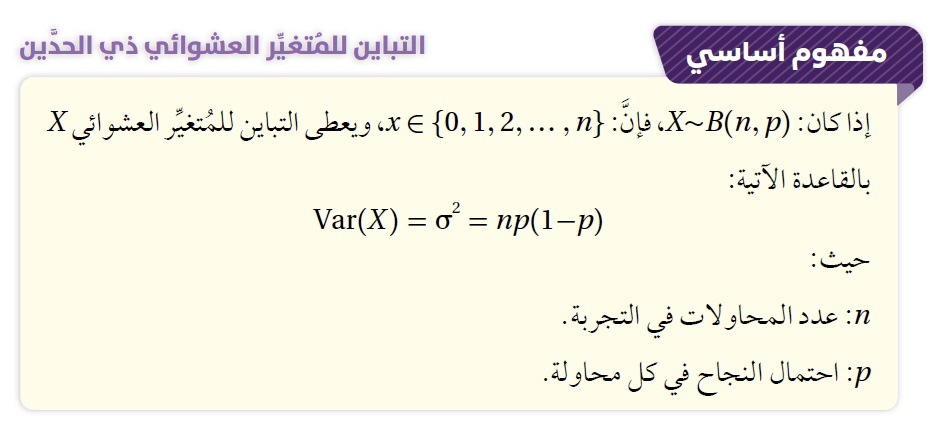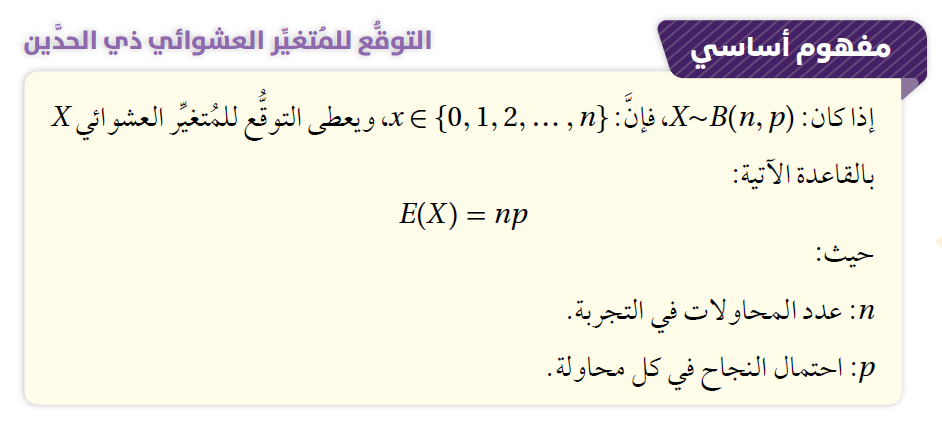 التوقُّع والتباين للمُتغيِّر العشوائي ذي الحدَّين