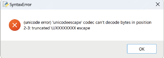 - .في حال تم استخدام إشارة (\) واحدة، وبعد تنفيذ البرنامج، سوف تظهر لنا إشارة تخبرنا بوجود خطأ كما في الشكل التالي:
