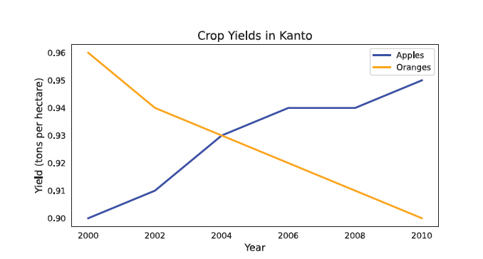 أن هناك تغيُُّرات واضحة في إنتاج المحاصيل ببلدة (Kanto ) ؛ إذ شهد إنتاج التفّّاح زيادة مستمرة، في حين انخفض إنتاج البرتقال بصورة تدريجية.