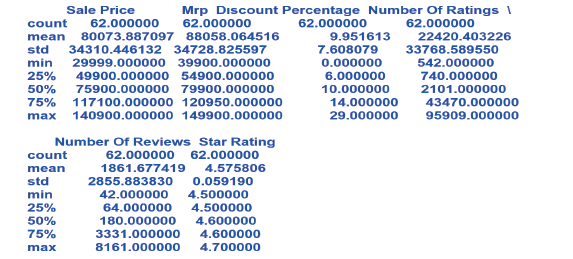 Sale Price Star Rating Number Of Review Number Of Ratings Mrp Discount Percentage