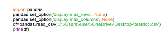 df=pandas.read_csv(“C:\\ Users\\user\\OneDrive\\Desktop\\apple_products.csv")