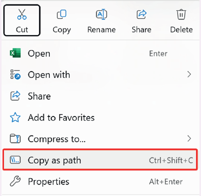 - وبعدها نقوم باختيار الخيار (Copy as Path) المظلل بالمستطيل الاحمر