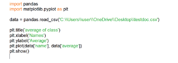 كما تعلمنا،يتم إستخدام الامر (import) لغايات إستدعاء المكتبات الخارجية. وهنا نحتاج الى إستدعاء مكتبة (Pandas) المسؤولة عن تحليل البيانات ومكتبة (Matplotlib) المسؤولة عن عرض البيانات والتي تحتوي على الوحدة الفرعية التي تسمى (pyplot) والتي تساعد على رسم المخططات البيانية.