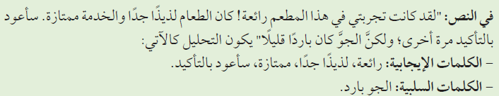 أ.تحليل المشاعر: معرفة ما يحتويه النص من احاسيس ومشاعر وتصنيفها الى إيجابية وسلبية أو محايدة. وأكثر ما يتم استخدام تحليل المشاعر في