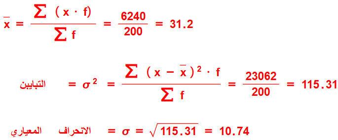 يبين الجدول المجاور توزيعا ل200 سائق وفق أعمارهم، ممن تسببوا في حوادث مرورية خطيرة في إحدى المدن على مدار أسبوع. أقدر التباين والانحراف المعياري لهذه البيانات